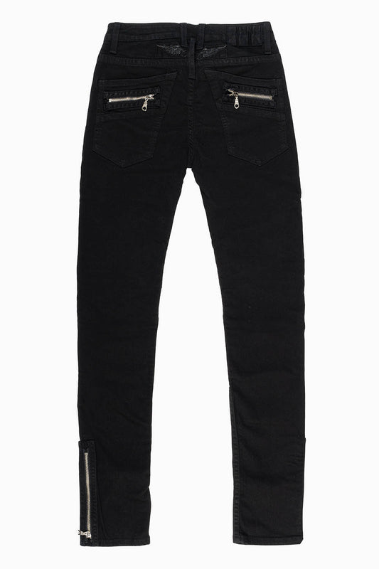 BIKER JEAN QUILTED KNEE WITH ZIPPERS IN PURE BLK WASH