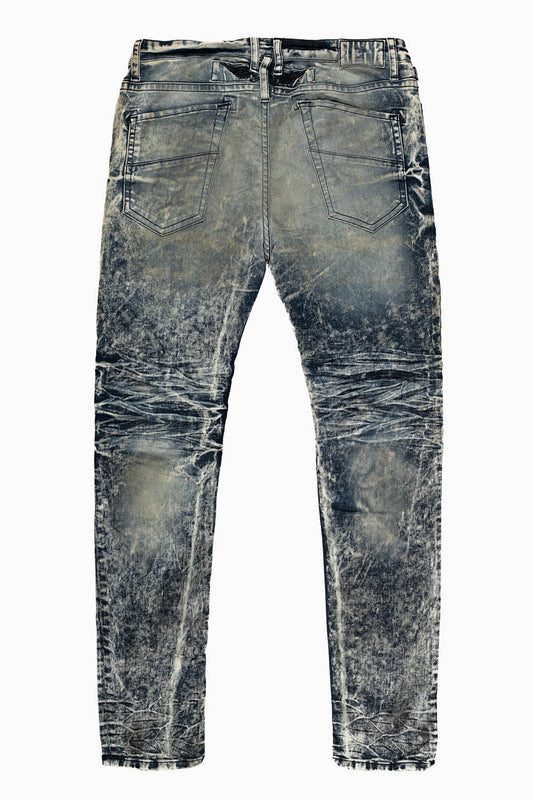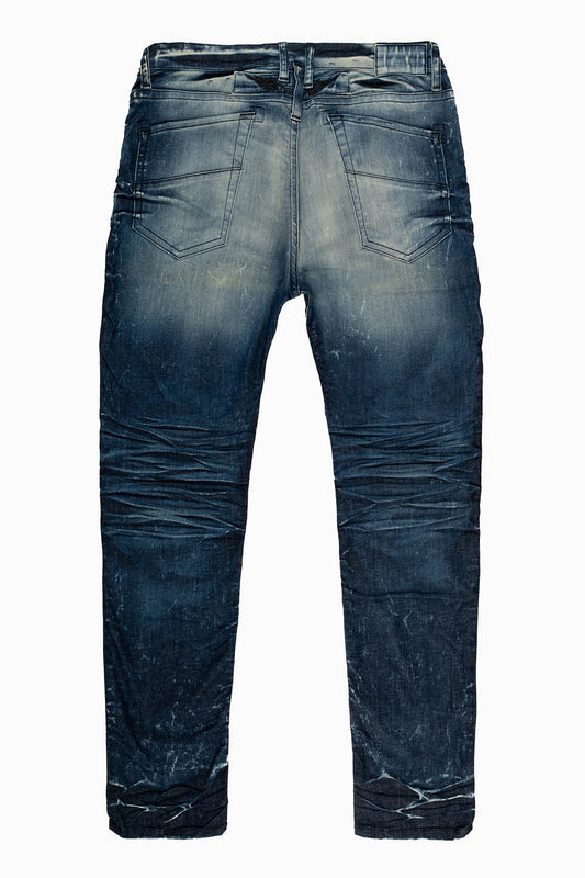BIKER JEAN QUILTED KNEE IN DY STRETCH FABRIC IN MINERAL DARK WASH