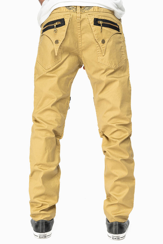 LONG FLAP MENS STRAIGHT JEANS WITH CRYSTALS IN DUSTY YELLOW