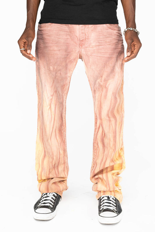 LONG FLAP MENS STRAIGHT LEG JEANS WITH CRYSTALS IN CANDY WASH