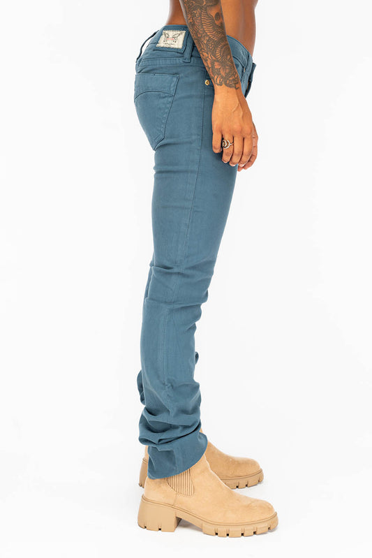 LOW RISE WOMENS JEANS IN PRUSSIAN BLUE WITH TONAL WINGS