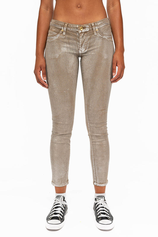 MARILYN WOMENS SKINNY JEANS IN KHAKI SILVER FOIL WASH WITH TONAL WINGS
