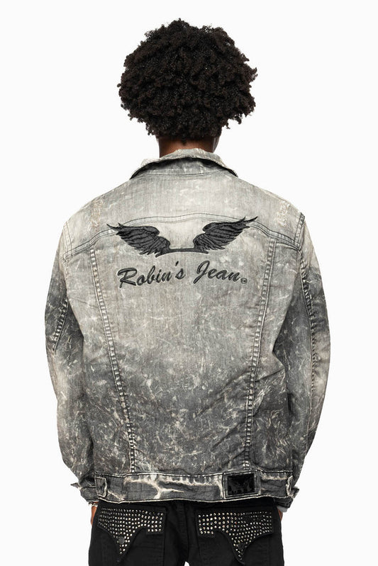 MENS BLACK DENIM JACKET IN 4D DARK BROKEN