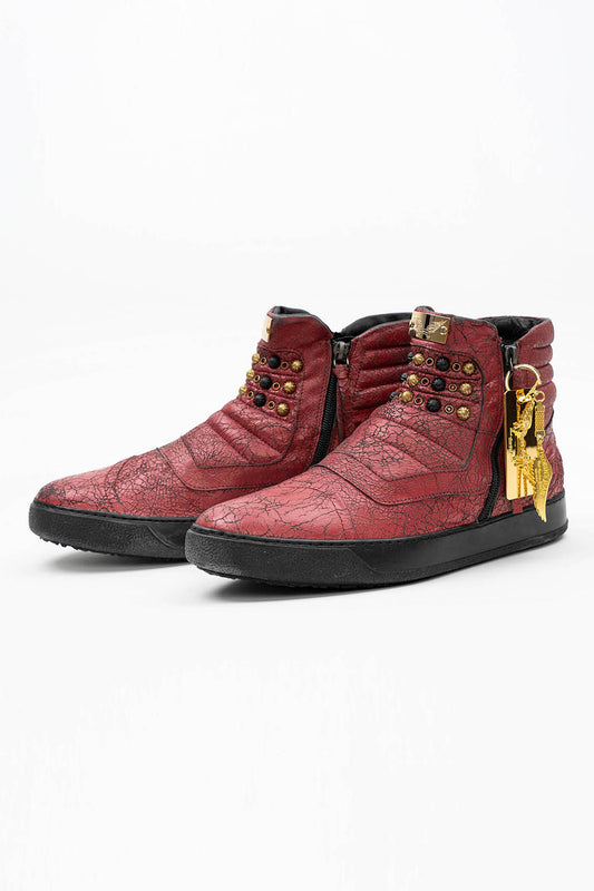 MENS BIKER SHOES IN CRACKLED RED WITH CRYSTALS