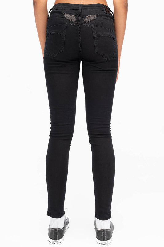 MIDRISE WOMENS SKINNY JEANS IN OVERDYE BLACK