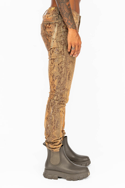 MID RISE WOMENS SKINNY JEANS WITH COBRA COATING