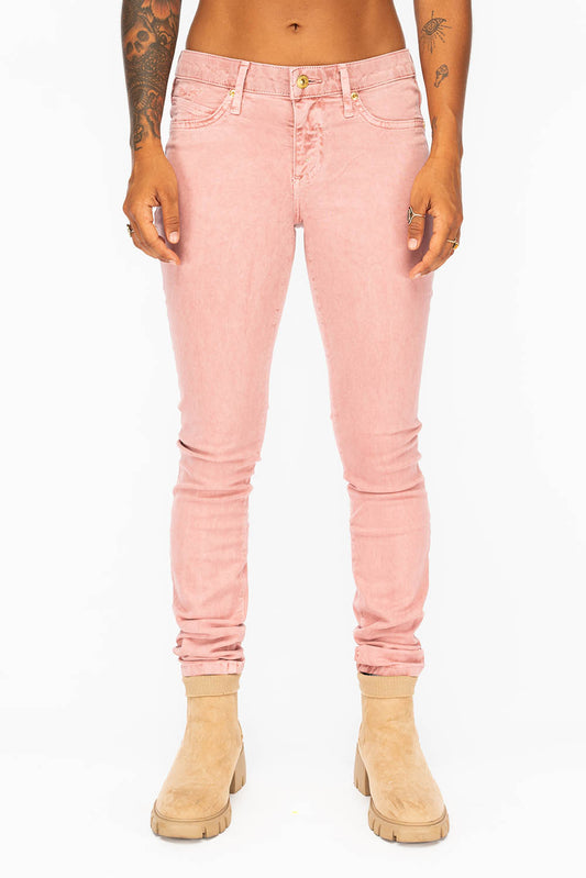 MID RISE WOMENS SKINNY JEANS IN LIGHT PINK WASH