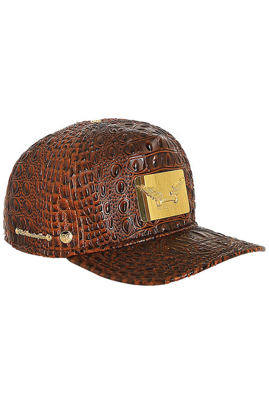 ROBIN'S GOLD TAG CAP IN BROWN CROC