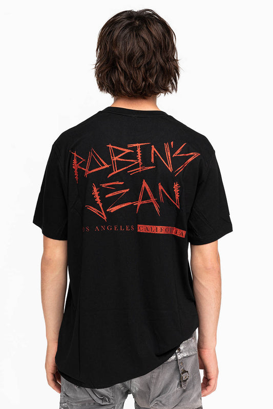 ROBINS SILVER GLITTER EAGLE CREST TEE IN BLACK