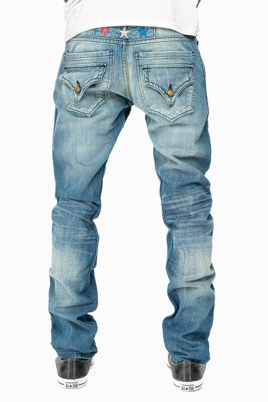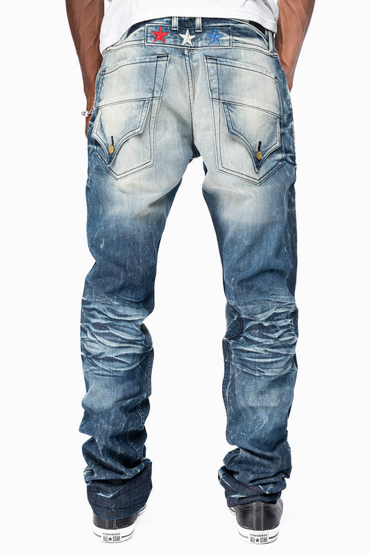 ROBINS RED LABEL BIKER JEANS IN MEDIUM BLUE WASH