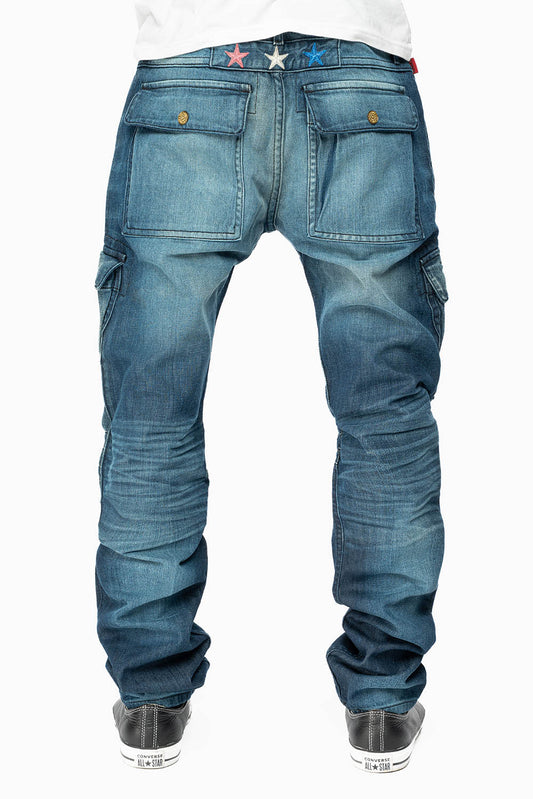 ROBINS RED LABEL BIKER INSPIRED MILITARY PANTS IN DARK BLUE WASH