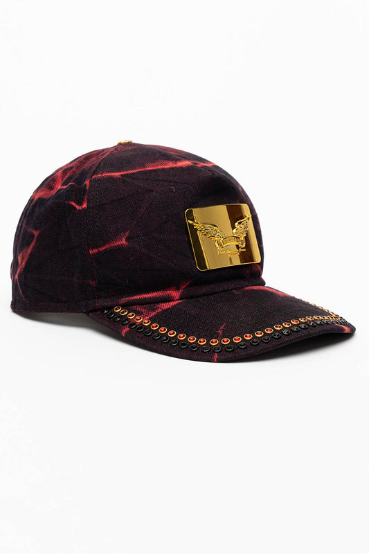 ROBIN’S CLASSIC WING CAP IN RED PATENT WITH GOLD EMBROIDERED LOGO WITH EMBELLISHMENT
