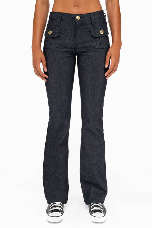 WOMENS MILITARY STYLE BOOT LEG JEANS IN RAW