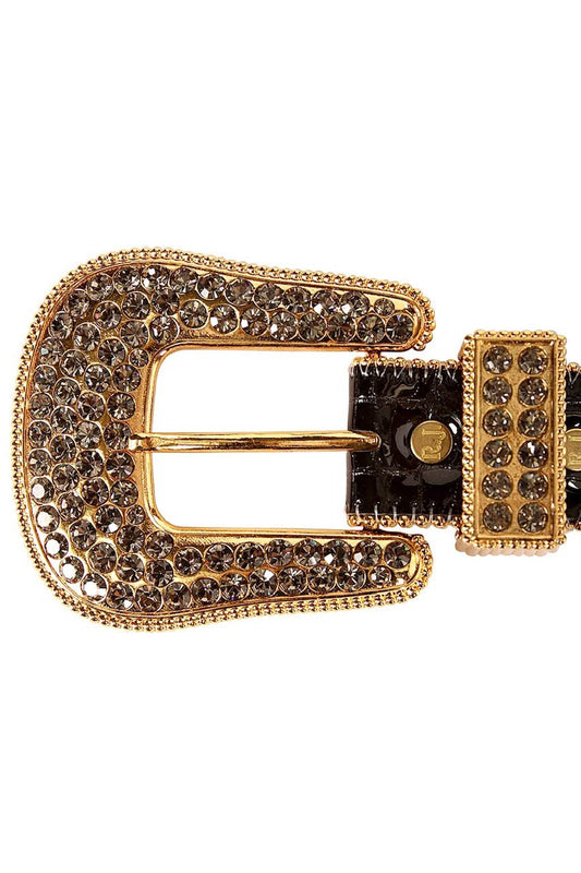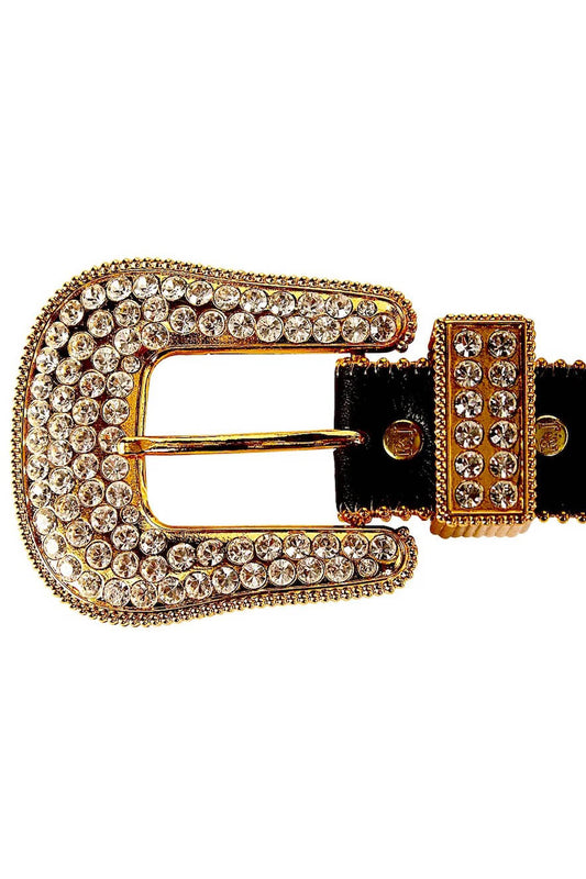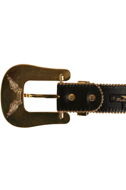 ROBIN'S JEAN BLACK LEATHER BELT WITH CLEAR CRYSTALS