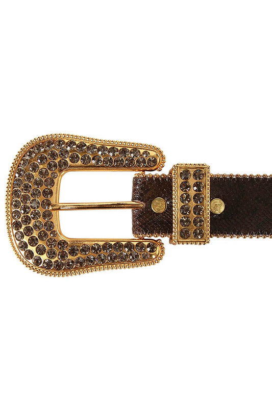ROBIN'S JEAN CRYSTAL BELT IN GOLD AND BROWN SNAKE