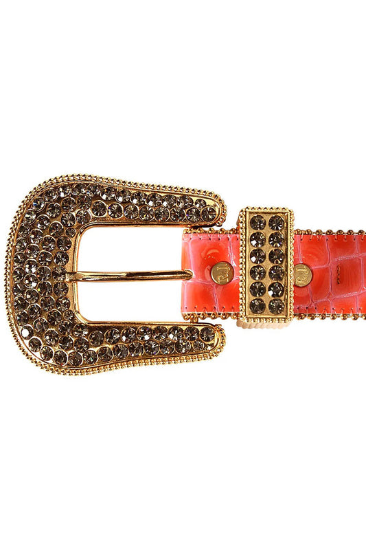 ROBIN'S JEAN PATENT LEATHER SALMON CROCODILE BELT FULL BEADED
