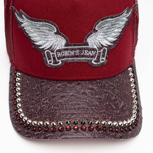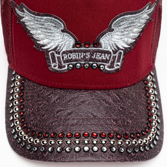BURGUNDY TRUCKER HAT WITH STUDS AND CRYSTALS