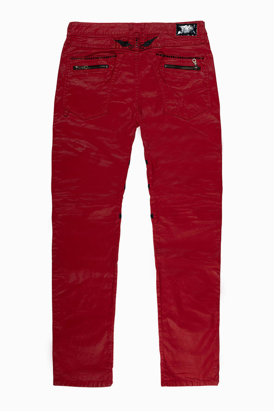MENS THE SHOW BIKER JEANS IN RED DY FABRIC EMBELLISHED WITH RED CRYSTALS
