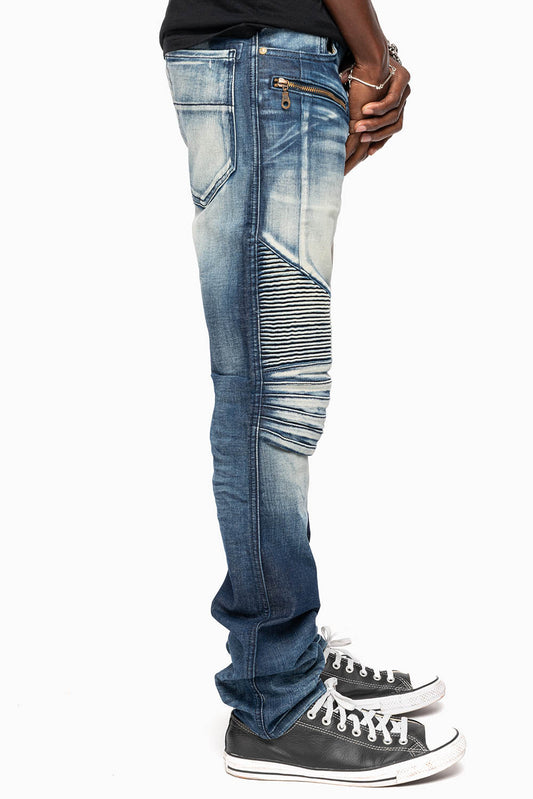 MENS MOTORCYCLE ZIPPERS SLIM JEANS IN JOSEPH INDIGO WASH