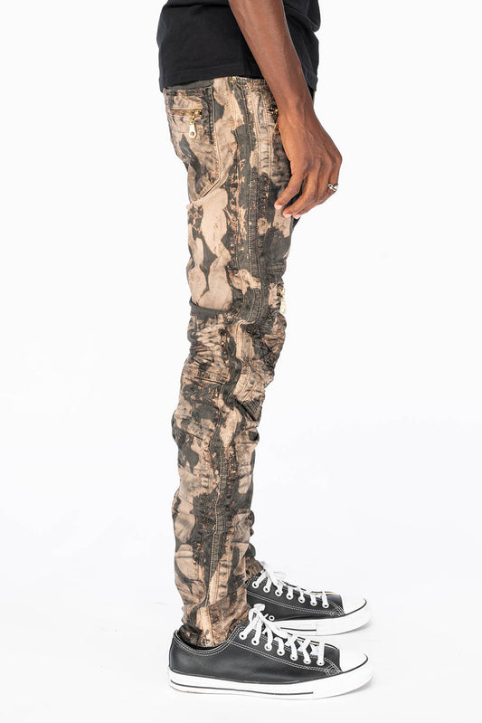 MENS BIKER JEANS IN TIE DYE CAMO GREEN