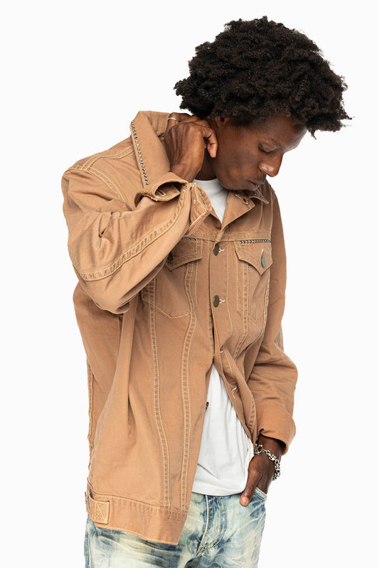 VINTAGE FASHION BROWN JEAN JKT WITH BROWN CONTRAST STICH WITH CRYSTALS