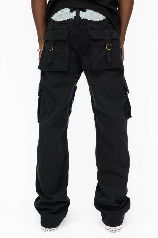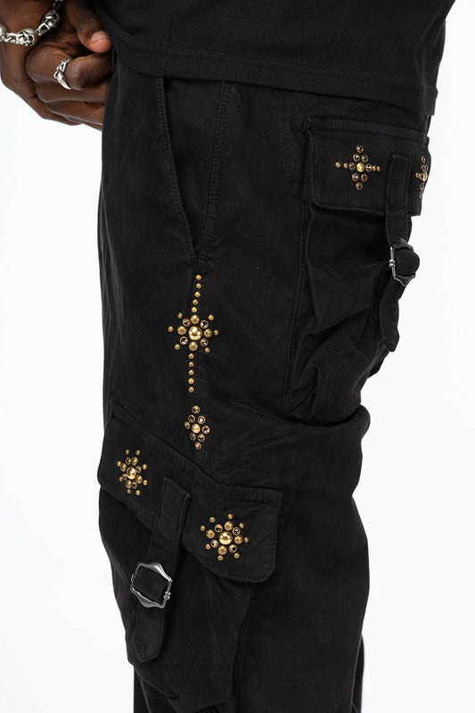 ROBINS NEW MILITARY STYLE CARGO PANTS IN BLACK WITH WITH GUNSLINGER CRYSTAL MOTIF