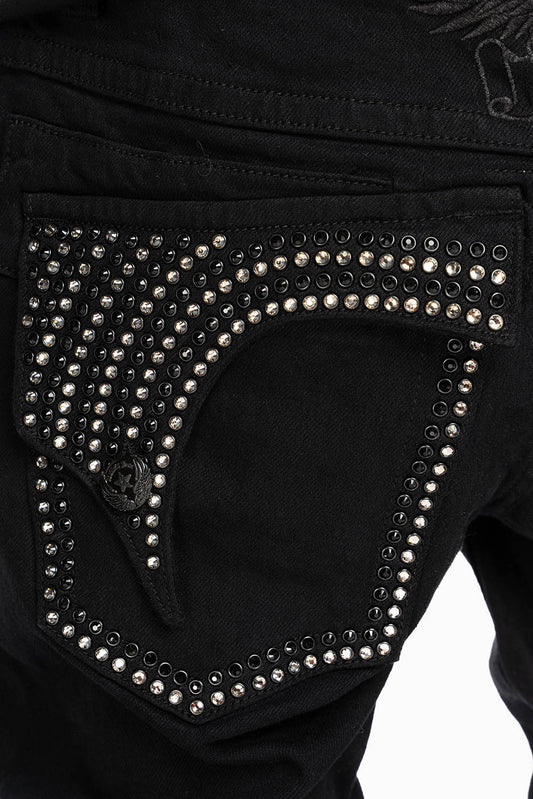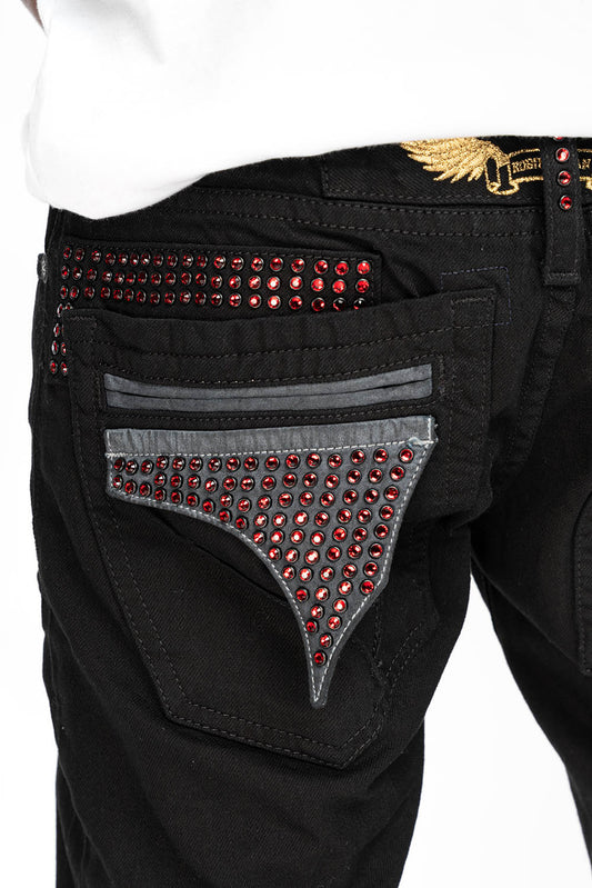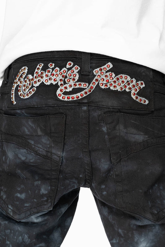 KILLER FLAP STRAIGHT JEANS IN PURE BLACK WASH WITH RED CRYSTALSRegular price $329.00 USDRegular priceUnit price per-