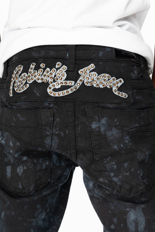 MENS LIMITED EDITION FLAP POCKET SLIM JEANS IN PURE BLK WASH WITH CRYSTALSRegular price $329.00 USDRegular priceUnit price per-