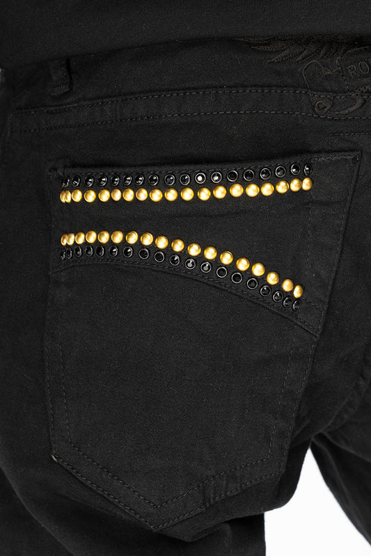 CLASSIC STRAIGHT LEG JEANS IN BLACK WASH EMBELLISHED WITH STUDS & CRYSTALSRegular price $269.00 USDRegular priceUnit price per-