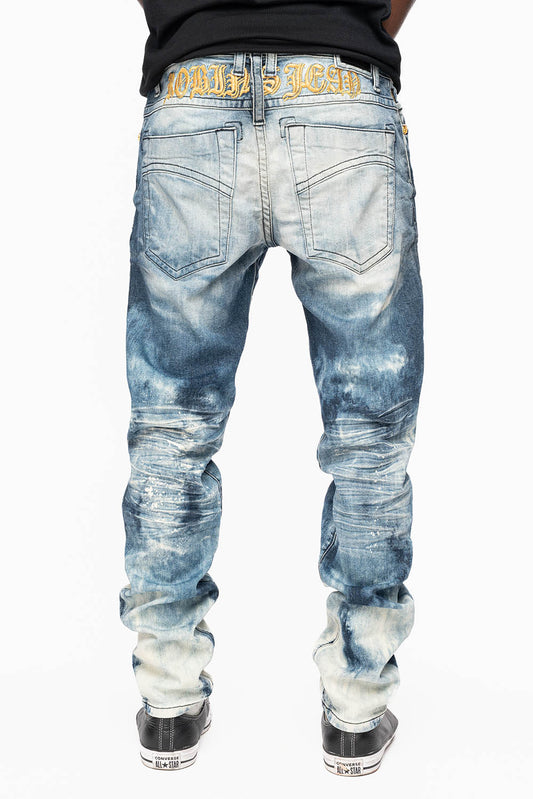 MENS SKINNY JEANS IN CLOUD JAPAN WASH WITH GOLD O.E EMBROIDERY LOGO