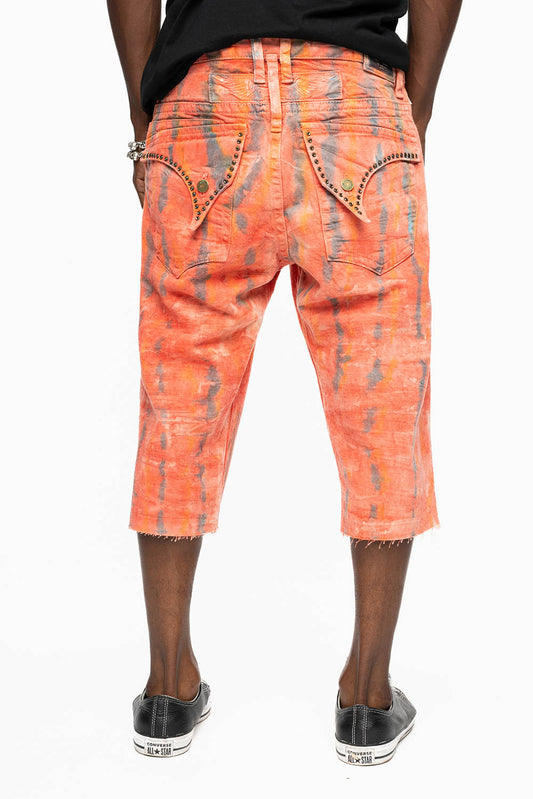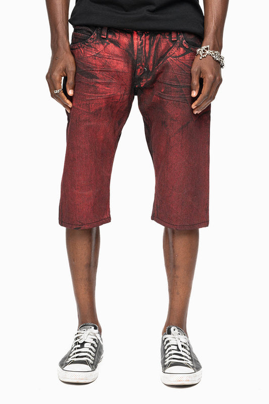 MENS SHORT WITH FLAP POCKETS IN RUSH RED WASH WITH CRYSTALS