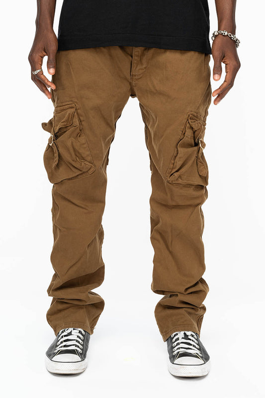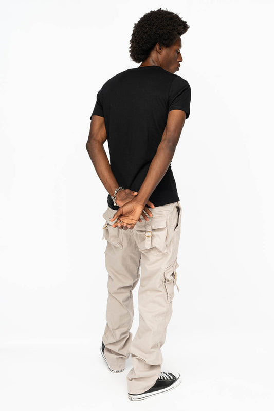 ROBINS NEW MILITARY STYLE CARGO PANTS IN STONE COLOR WASH