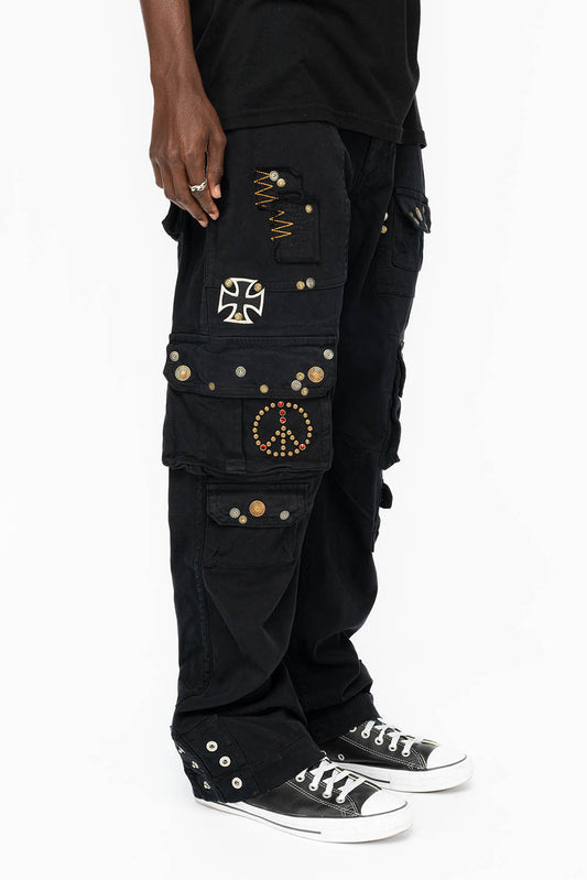 ORIGINAL ROBIN’S JEAN CALL OF DUTY CARGO PANTS IN BLACK COLOR WITH ROCK N ROLL PATCH