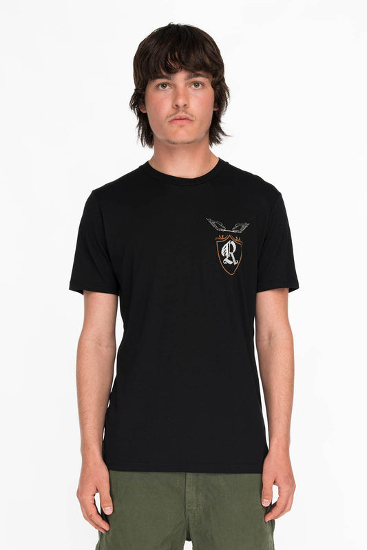 ROBINS SILVER GLITTER EAGLE CREST TEE IN BLACK