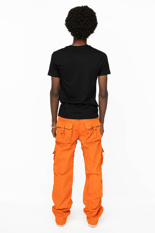 ROBINS NEW MILITARY STYLE CARGO PANTS IN ORANGE WITH ORANGE CRYSTALS