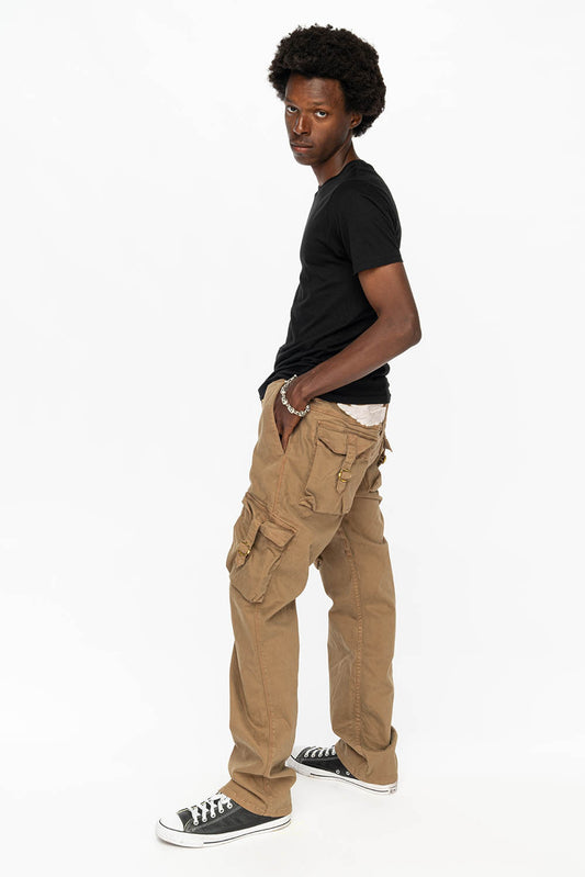 ROBINS NEW MILITARY STYLE CARGO PANTS IN KHAKI COLOR WASH