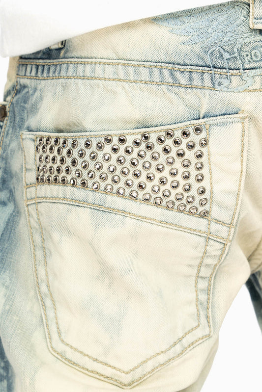 MENS STRAIGHT CUT JEANS WITH CRYSTALS AND STUDS IN FUTURE WASH