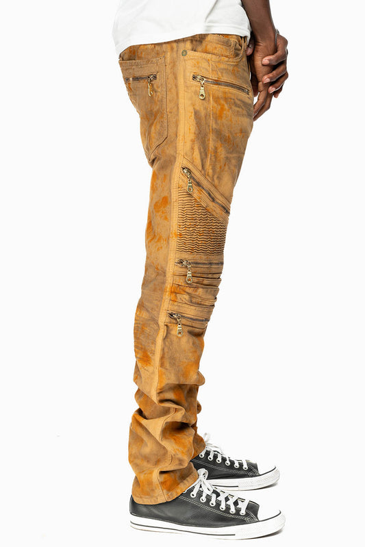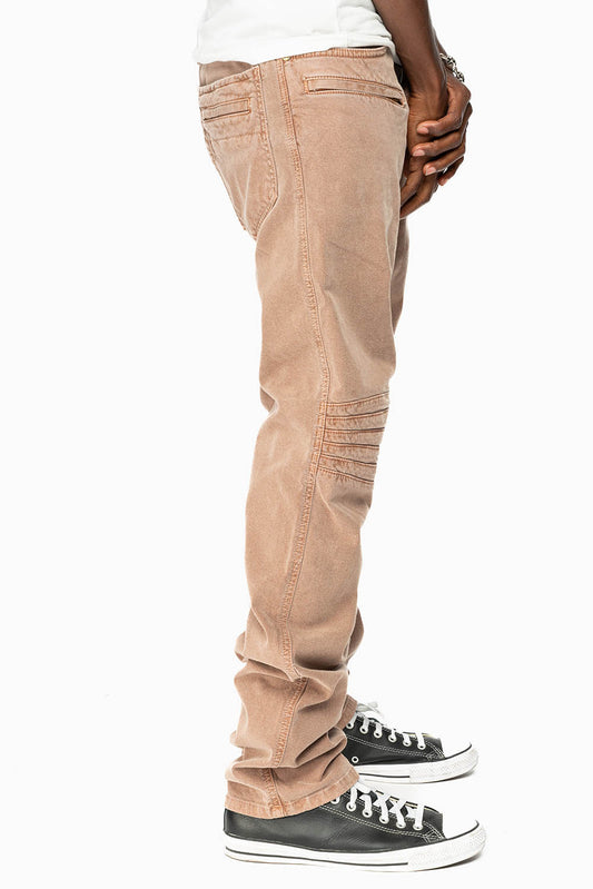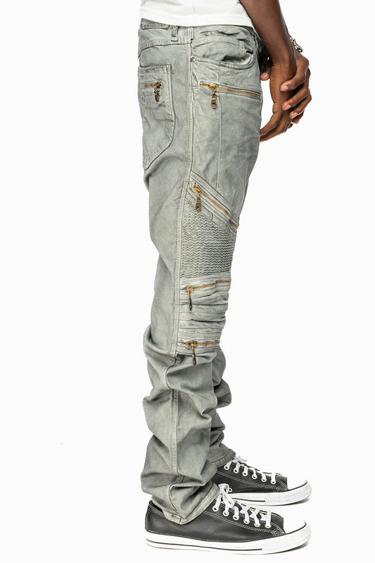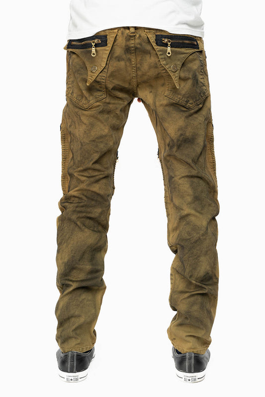 MENS MOTO BIKER JEANS IN KHAKI WASH