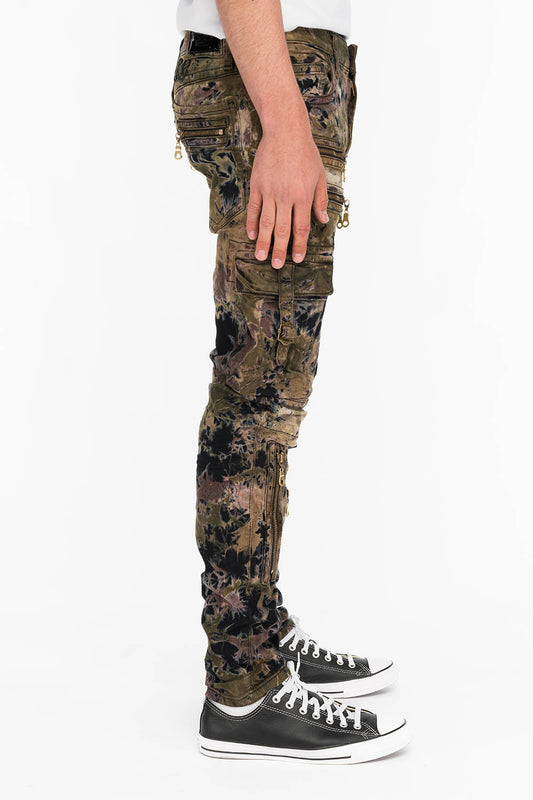 MENS BIKER JEANS IN TIE DYE CAMO GREEN