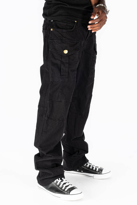 MENS PREDATOR CARGO PANTS IN BLACK RESURRECTION WASH