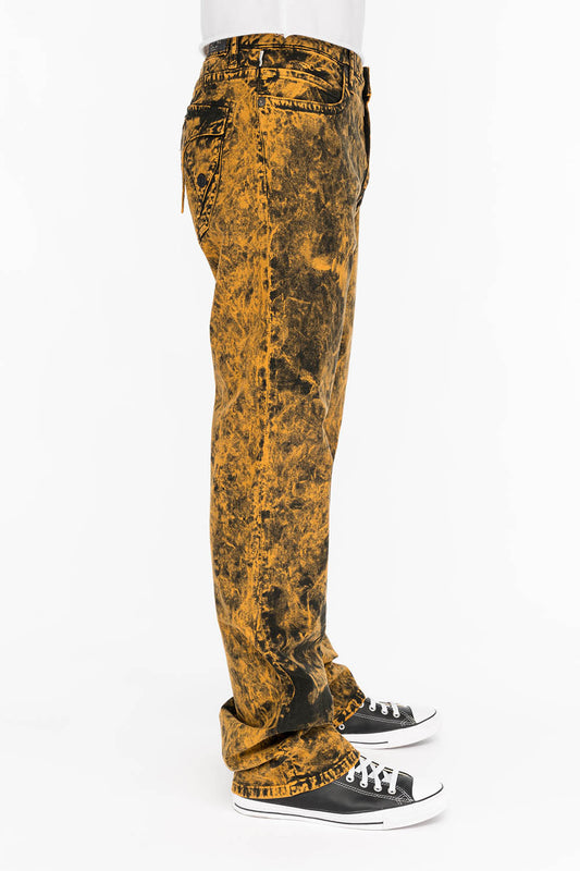 DOUBLE FLAP JEANS IN TIE DYE MUSTARD