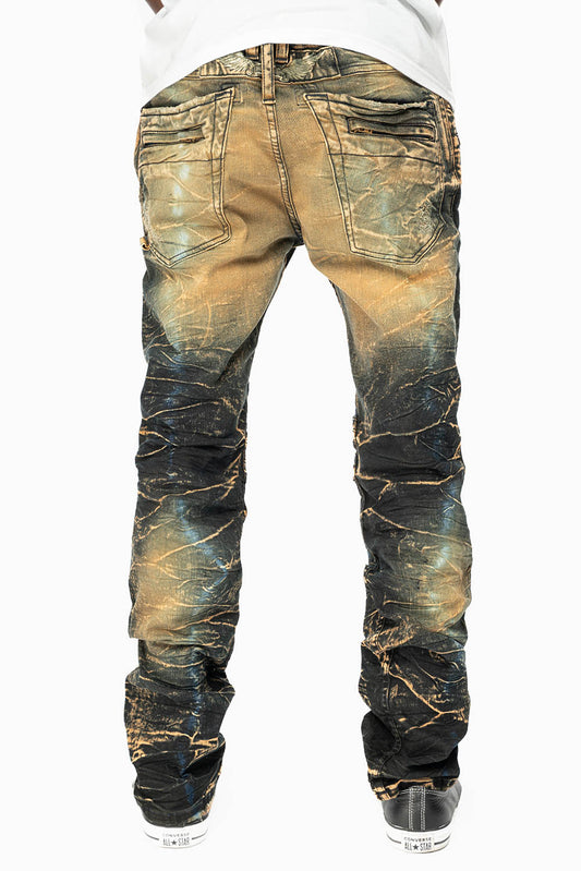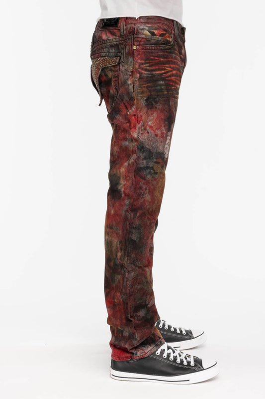 MENS LONG FLAP SLIM JEANS IN GOOD TIME COPPER WITH CRYSTALS