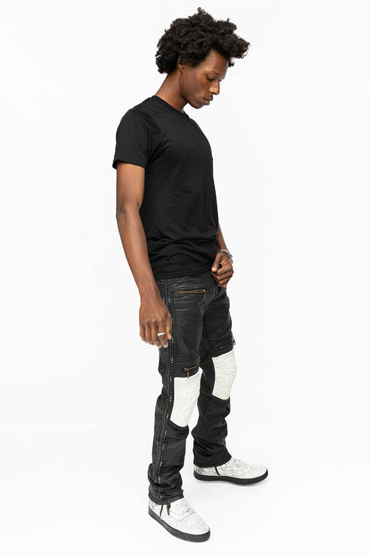 MENS LEATHER FLAP POCKET STRAIGHT LEG JEANS IN BLK
