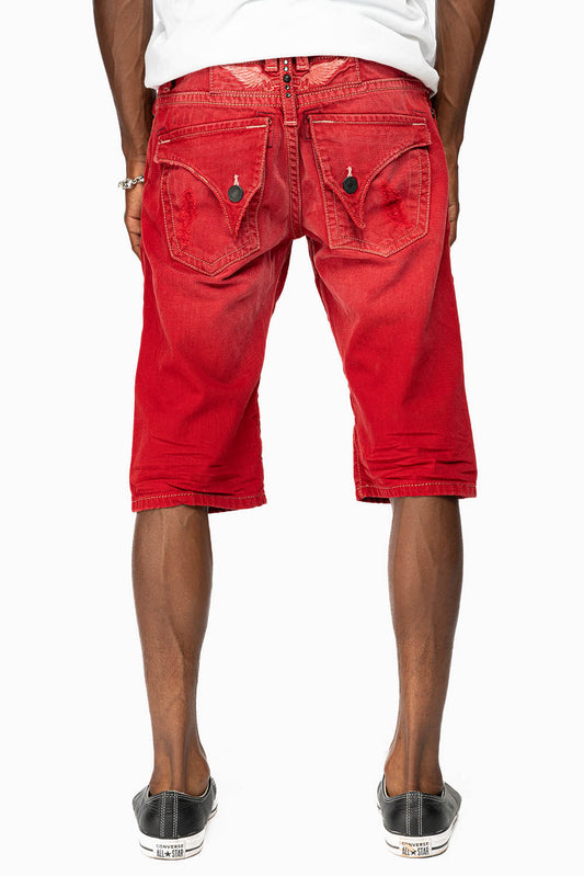 DESTROY KILLER FLAP MENS SHORTS IN F_ED UP RED WITH PATCHES