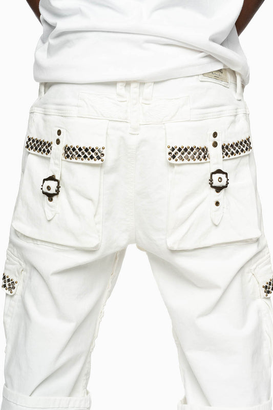 MENS MILITARY CARGO SHORTS IN WHITE WITH STUDS AND CRYSTALS