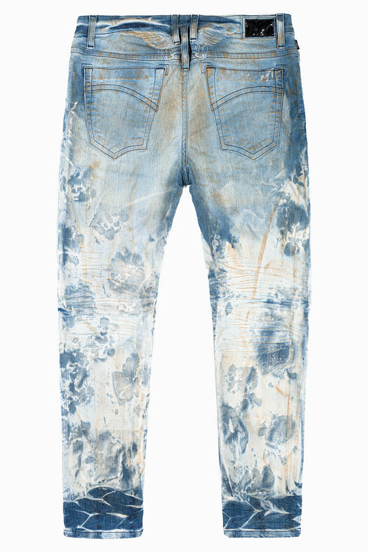 SKINNY MENS JEANS IN FROZEN WASH WITH MONTANA BLUE AND RED CRYSTALS
