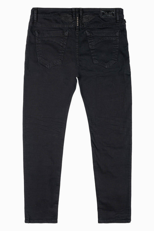 MENS SKINNY JEANS IN PURE BLACK WASH WITH TONAL WING EMBROIDERY