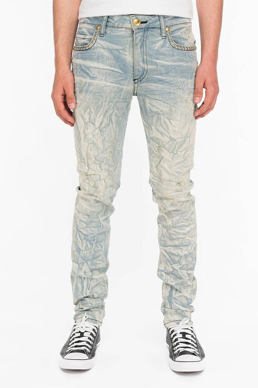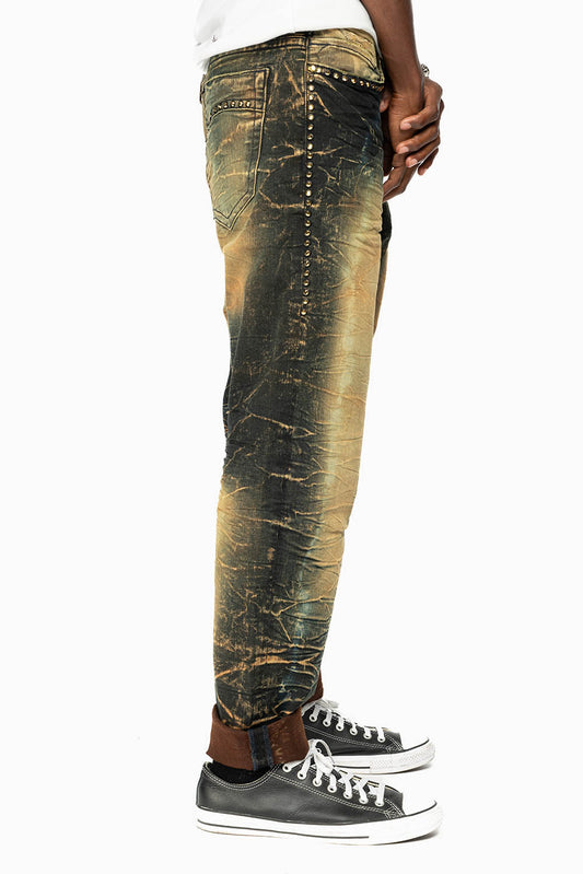 SKINNY MENS JEANS IN 4D GREEN TEA WASH WITH AURUM CRYSTALS