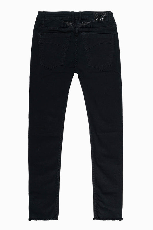MENS SKINNY JEANS IN PURE BLACK WASH WITH TONAL WING EMBROIDERY