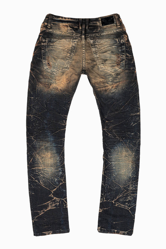 MENS MOTORCYCLE ZIPPERS SLIM JEANS IN MINERAL CHARCOAL WASH WITH GOLD LEAF TREATMENT